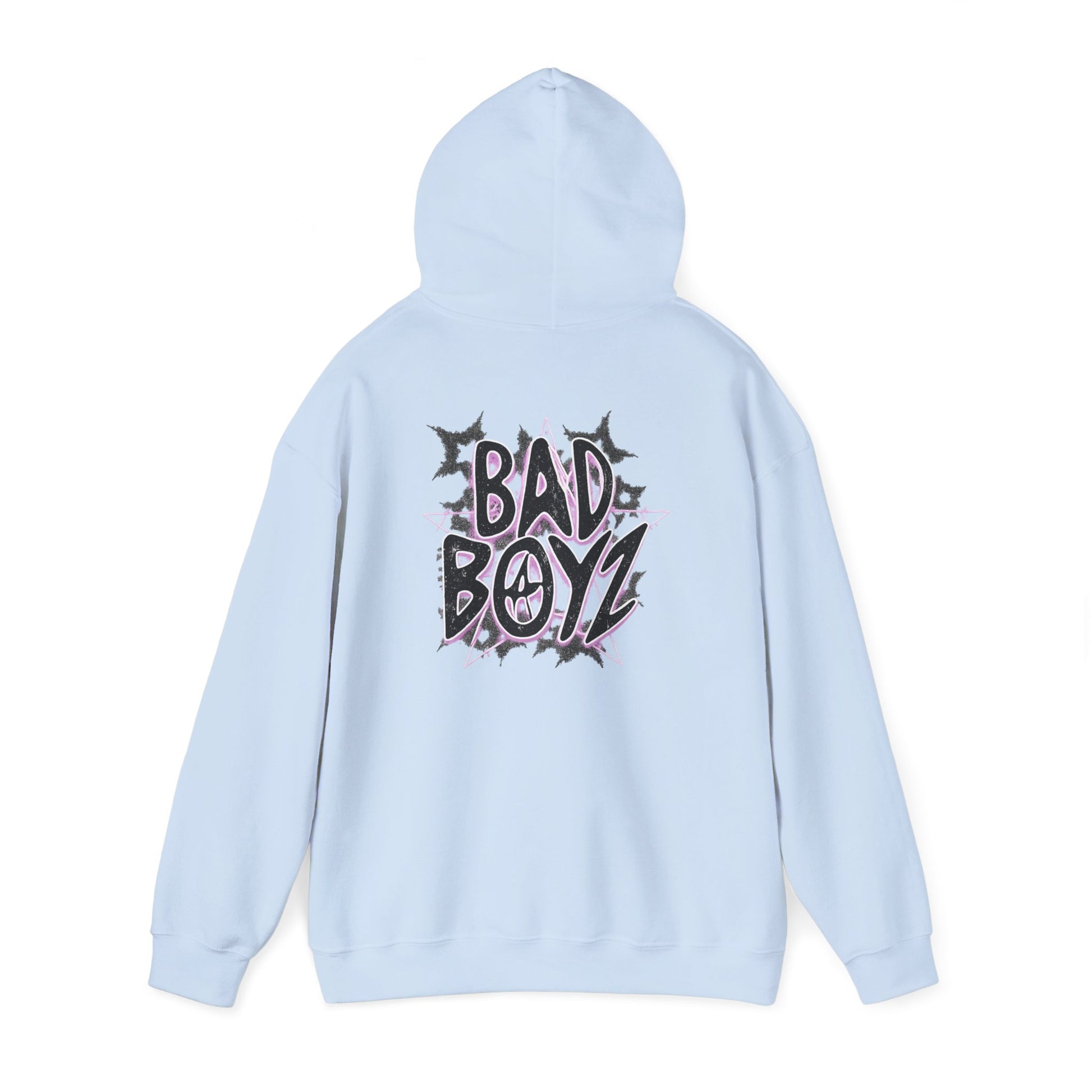 This cozy hooded sweatshirt carries a playful, rebellious energy—soft against the skin but loud in personality. A small, mischievous skull sits on the chest, while the back flashes a bold “BAD BOY” graphic framed by rough, electric accents. The double-lined hood and color-matched drawcord give it a polished look; the roomy kangaroo pocket and medium-heavy fabric deliver real warmth on chill evenings. Wear it over a tee for skatepark nights, late coffee runs, or when you want your outfit to speak with a wink. It feels lived-in from the first wear and keeps its shape and print through regular use.