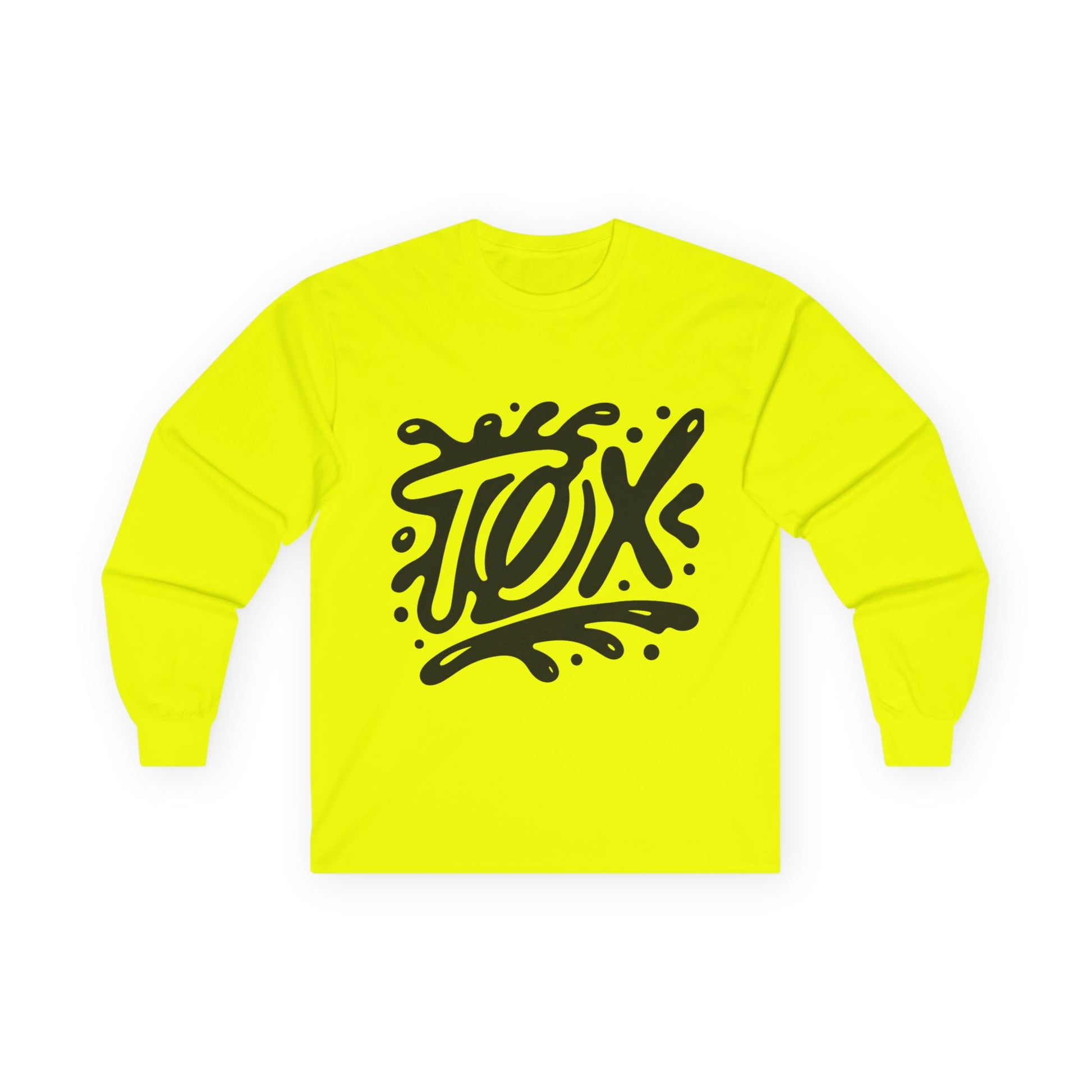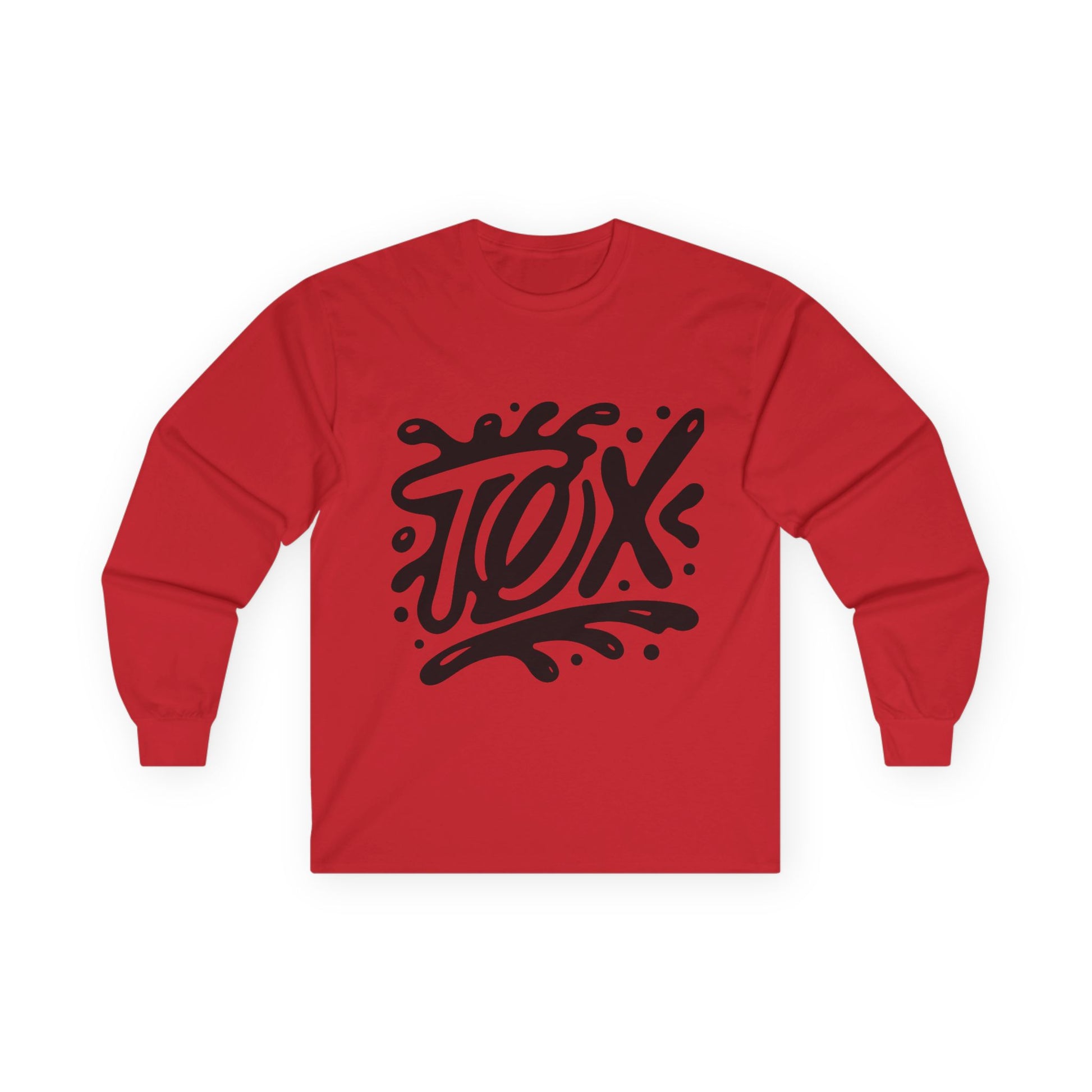 🔸 Ubicación del diseño: Centro trasero dentro del recuadro marcado 🔸 Estilo gráfico: Líquido, experimental, visual en movimiento 🔸 Color: Blanco con bordes negros (opcional), sin fondo 🔸 Narrativa: TØX se transforma en fluidez — el estilo se derrama, no se imprime