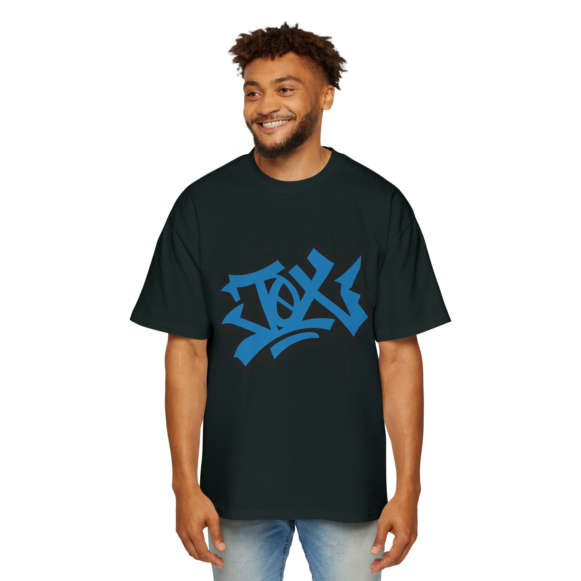 Descripción corta: Estética callejera, impacto visual. La camiseta edición TØX GRAFFITI fusiona el negro absoluto con trazos azules explosivos en un diseño sin fondo, listo para romper esquemas.