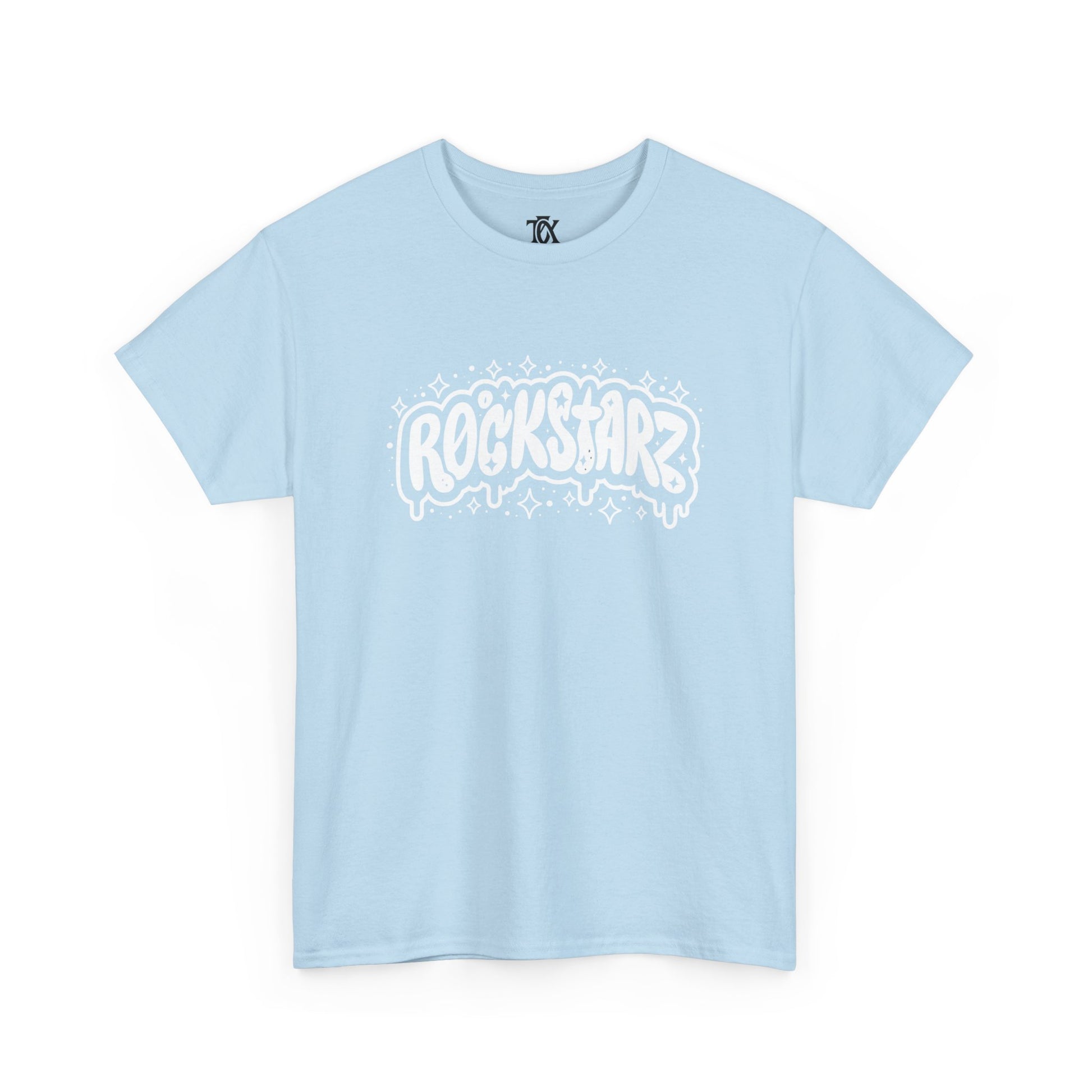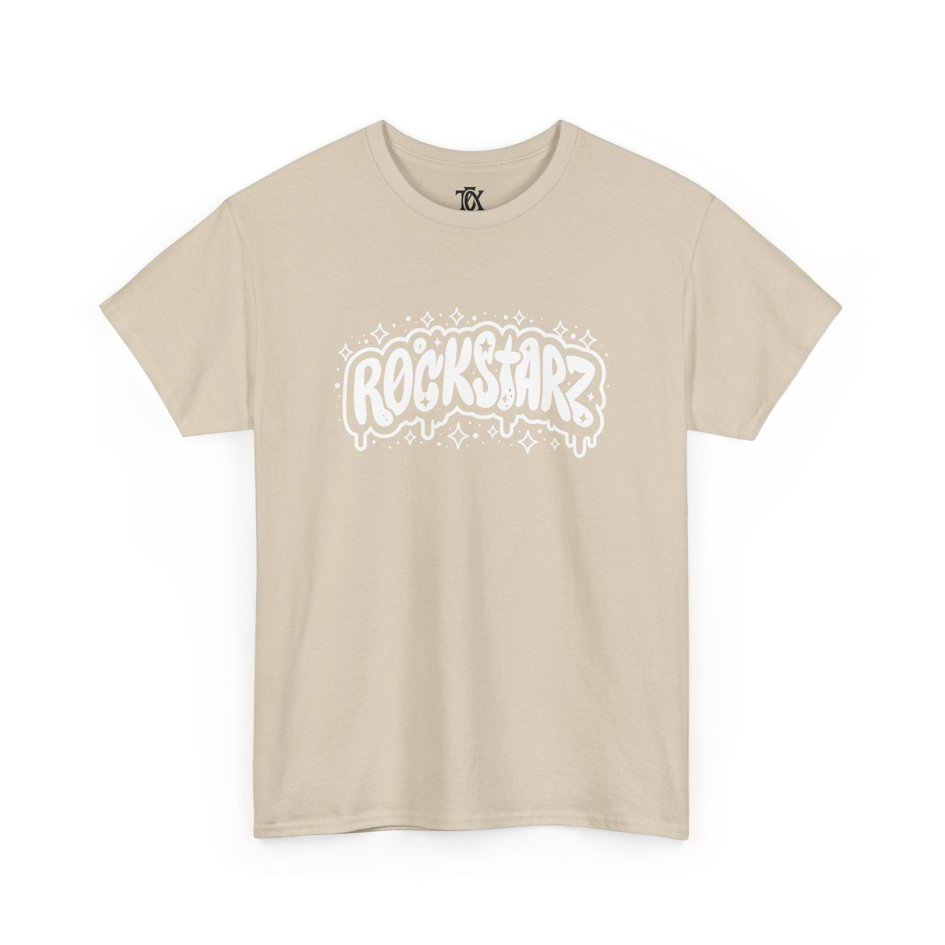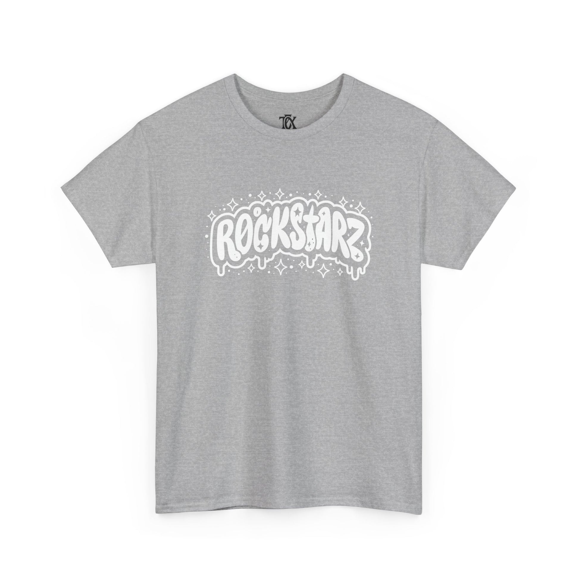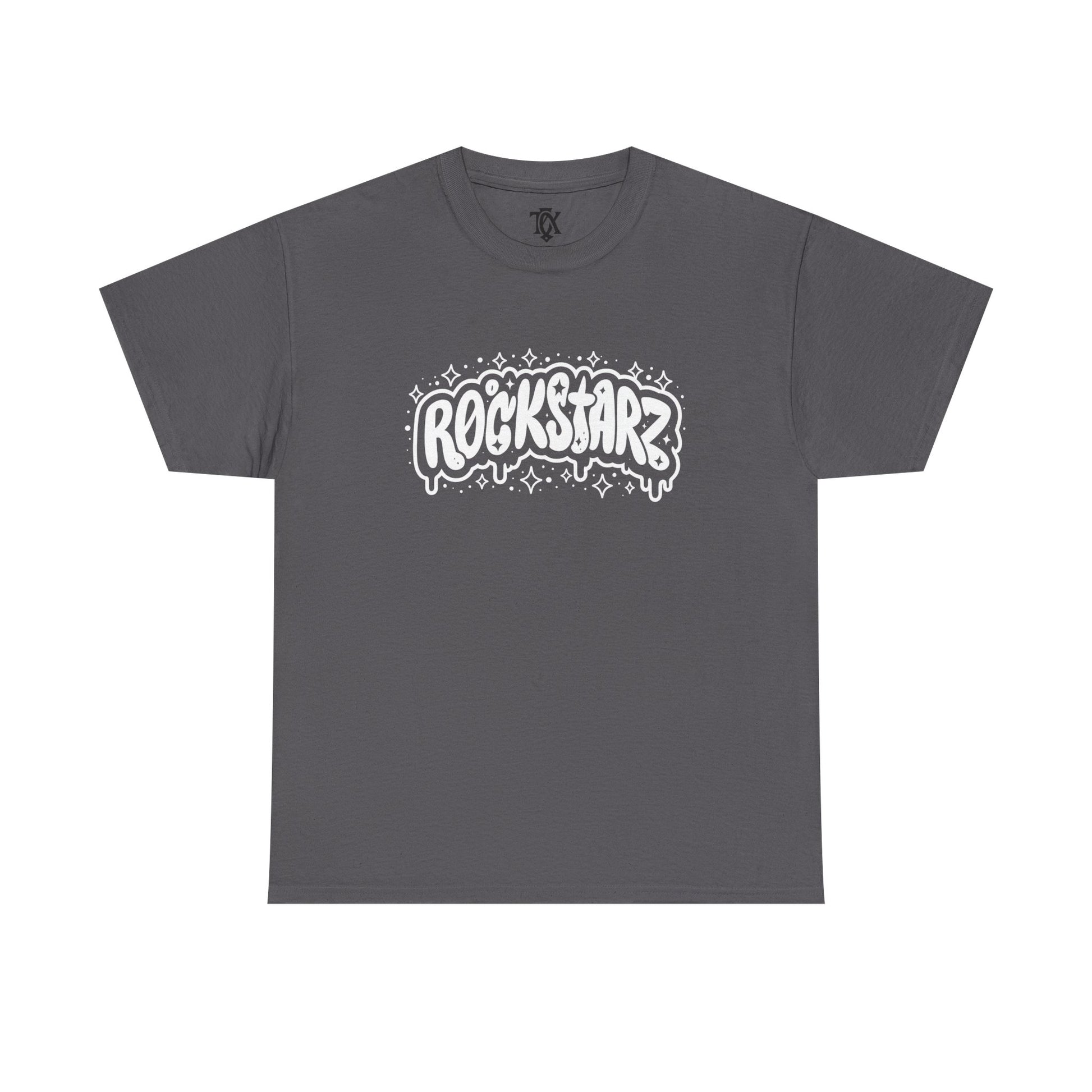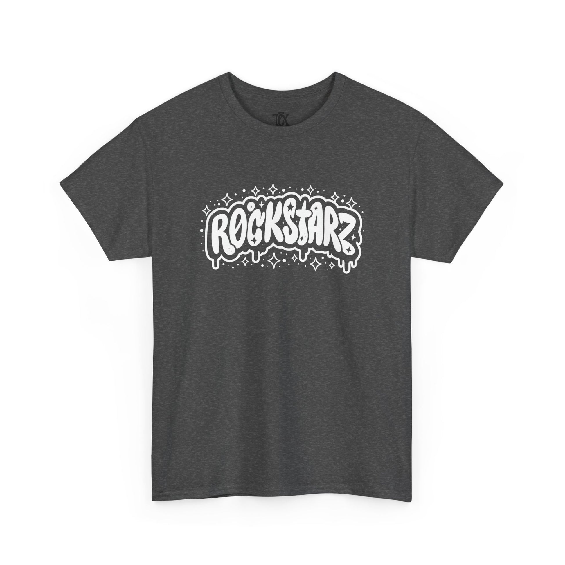 This soft, midweight tee carries a bold, hand-drawn “ROCKSTARZ” graphic across the chest and a small logo printed at the upper back — a simple but confident statement piece for people who live for loud music and late nights. The shirt’s relaxed, classic cut and resilient ribbed collar make it comfortable for long shows, rehearsals, or casual days when you want to bring a little stage energy into ordinary life. Wear it with worn jeans and a leather jacket for a garage‑band look, or layer it under a flannel for an off-duty musician vibe. The printed details are sharp and matte, adding attitude without fuss.