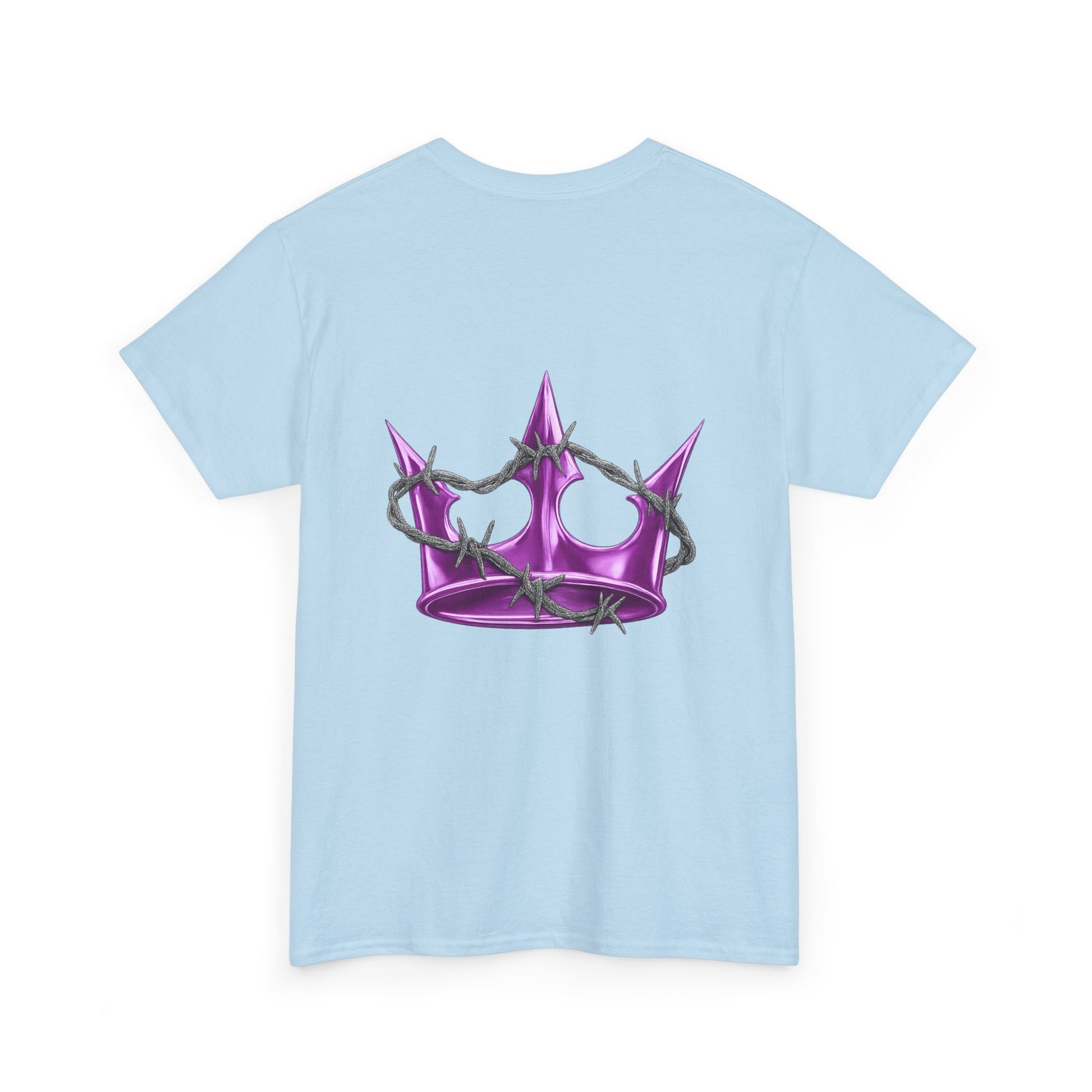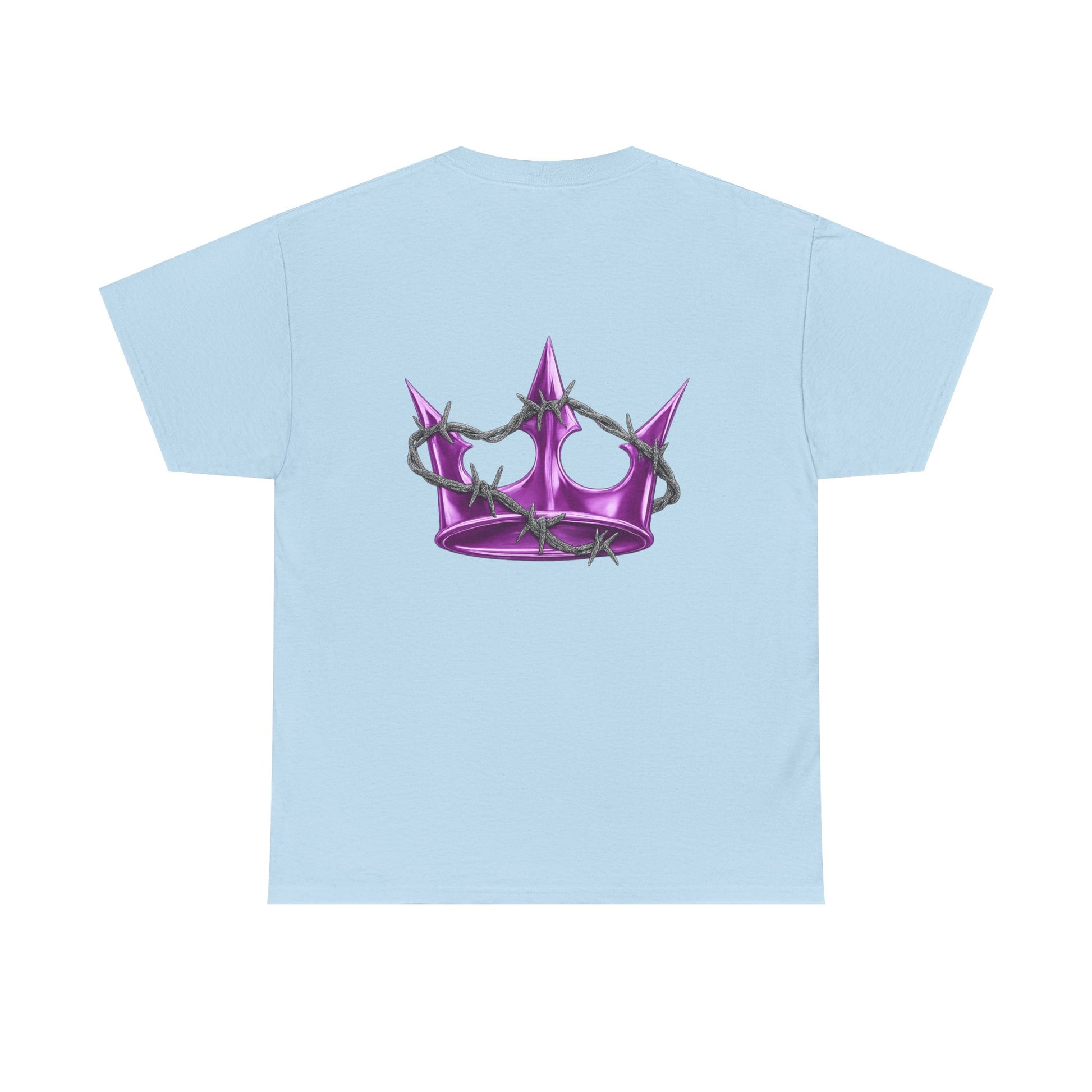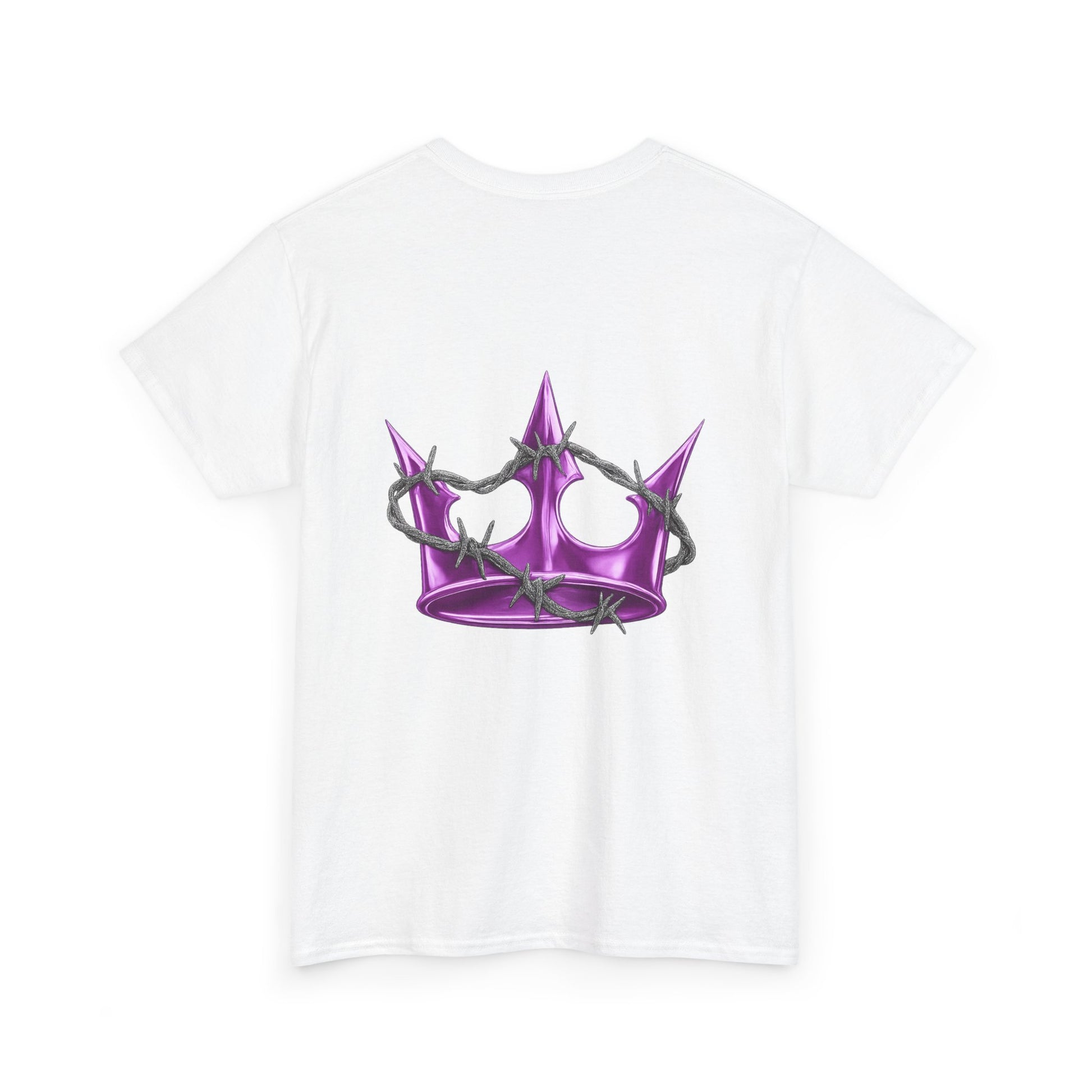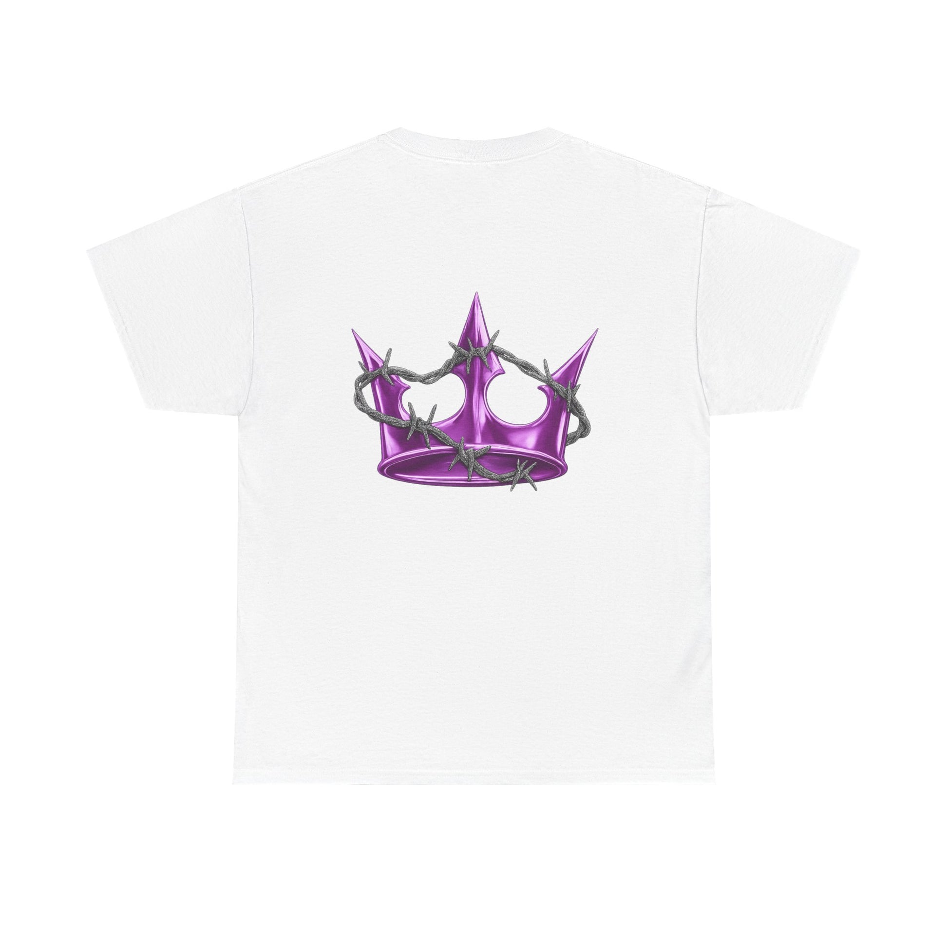 A soft, classic tee with subtle edge — this white cotton shirt pairs delicate, gothic-style lettering across the chest with a glossy pink star on the back. The fit sits relaxed at the shoulders and body, giving room to move without looking oversized. Wear it layered under a denim jacket for nights out or alone with high-waisted jeans for a quieter, street-ready look. The muted pearlescent pink of the star catches light without shouting; the front’s arched script adds a vintage, slightly dark-pop vibe. It feels lived-in from the first wear and becomes a quiet statement piece in a capsule wardrobe.