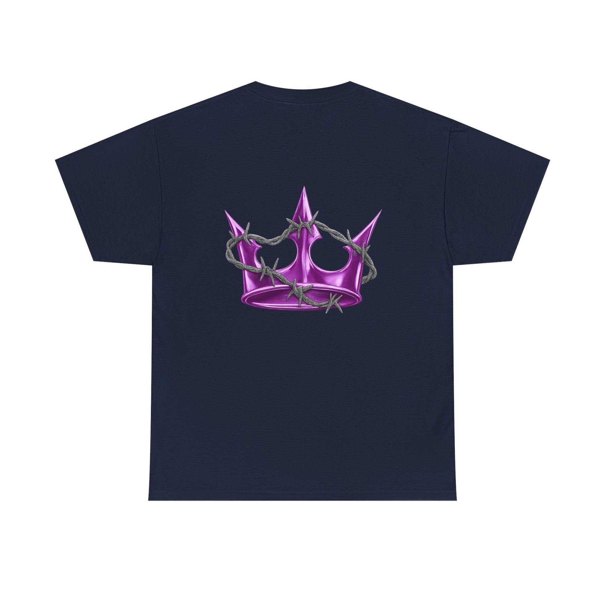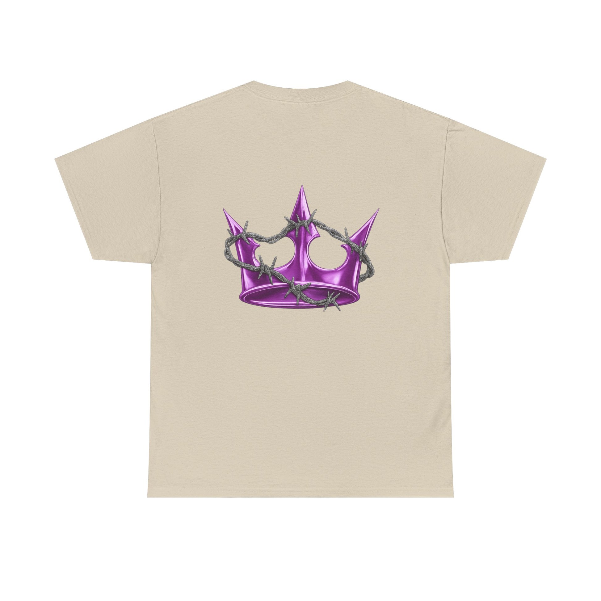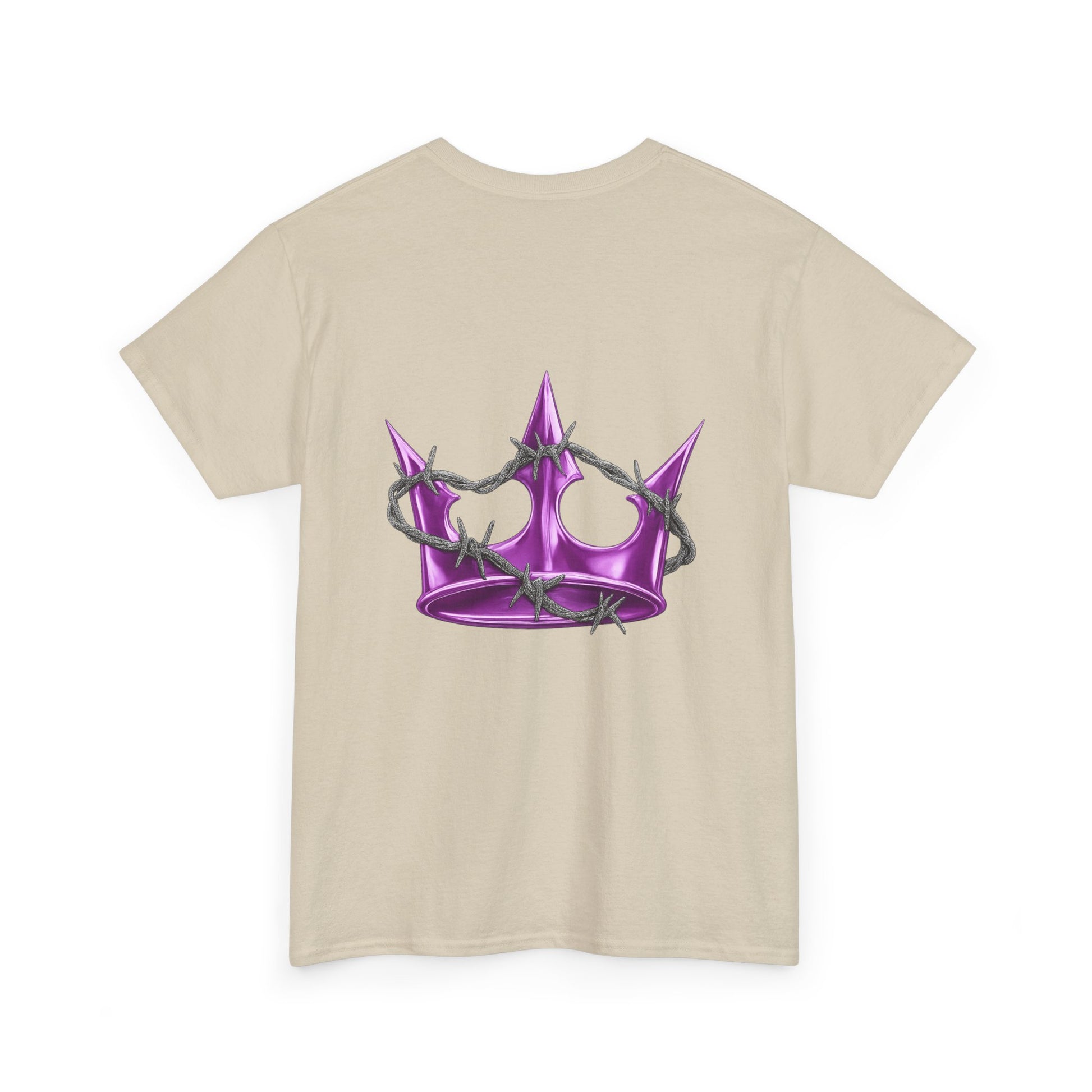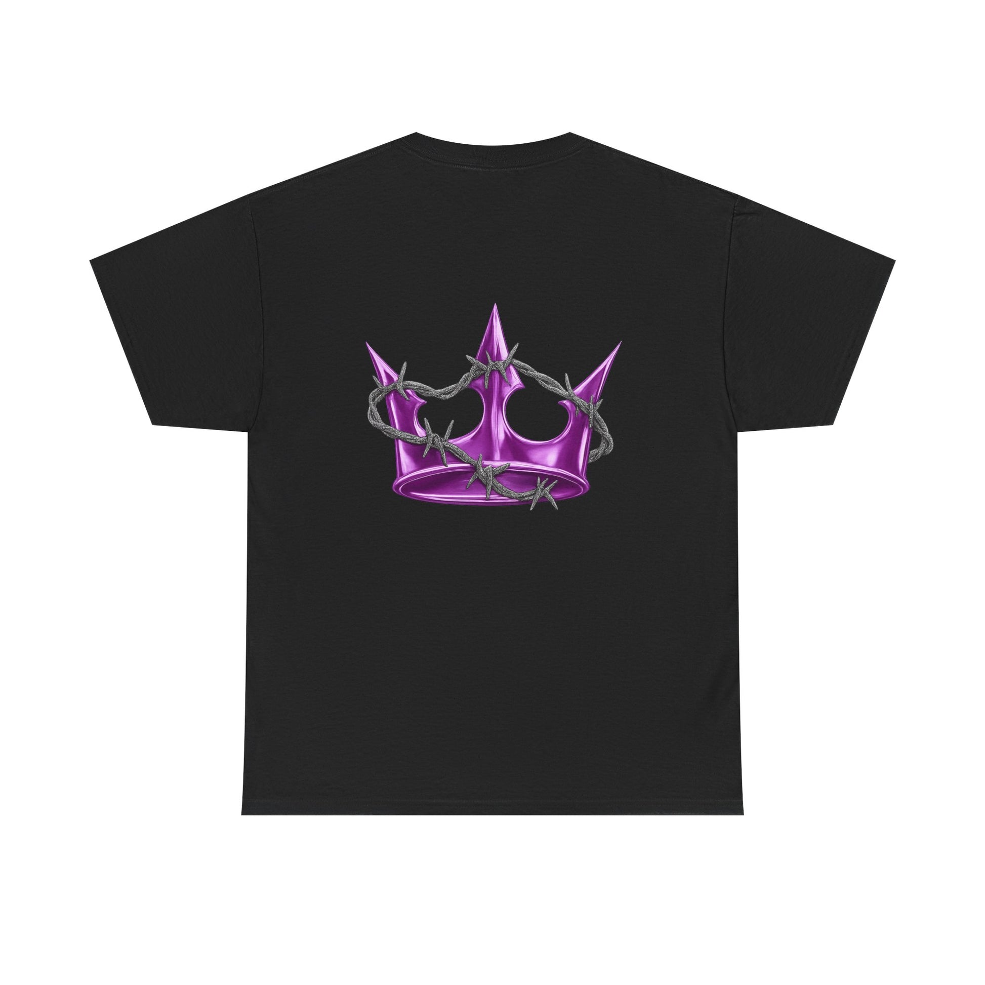 A soft, classic tee with subtle edge — this white cotton shirt pairs delicate, gothic-style lettering across the chest with a glossy pink star on the back. The fit sits relaxed at the shoulders and body, giving room to move without looking oversized. Wear it layered under a denim jacket for nights out or alone with high-waisted jeans for a quieter, street-ready look. The muted pearlescent pink of the star catches light without shouting; the front’s arched script adds a vintage, slightly dark-pop vibe. It feels lived-in from the first wear and becomes a quiet statement piece in a capsule wardrobe.